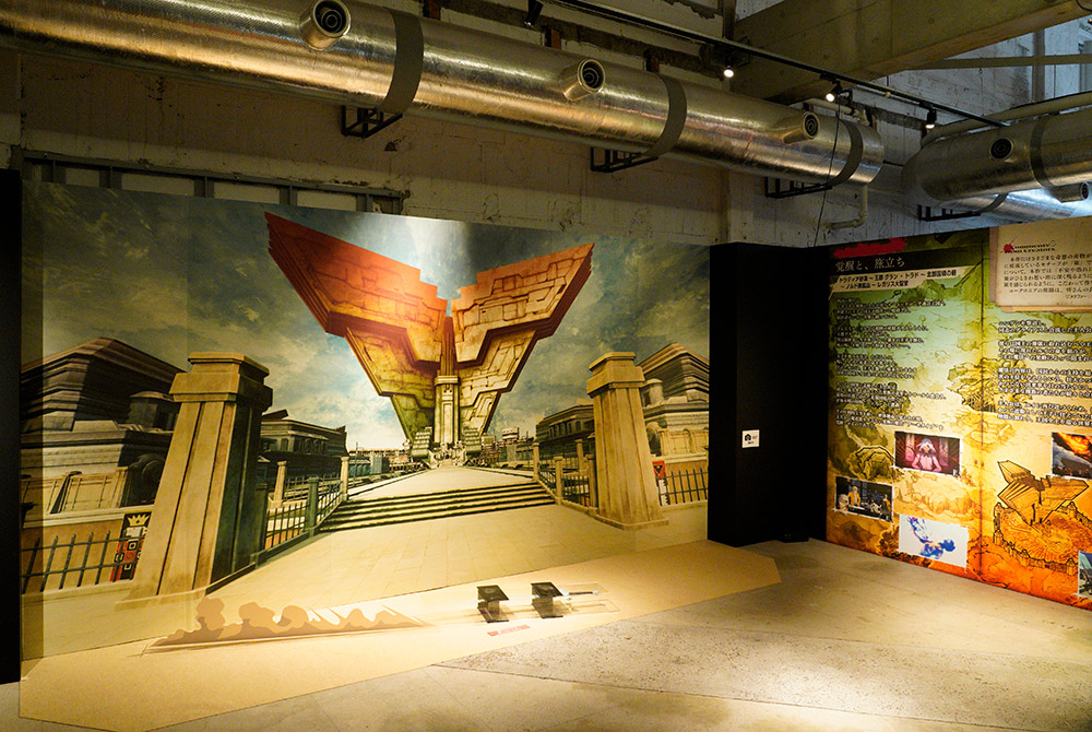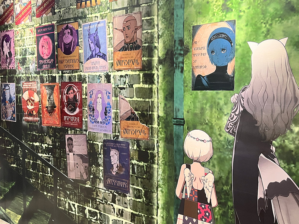 「メタファー:リファンタジオ」での旅を思い起こさせる数々のシーンと、副島成記氏による描きおろしイラストでデザインされた大迫力のビジュアルが来場者を迎えます。美しいアートを間近でぜひご覧ください。