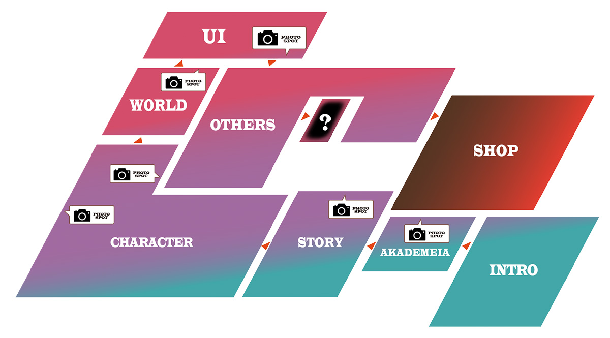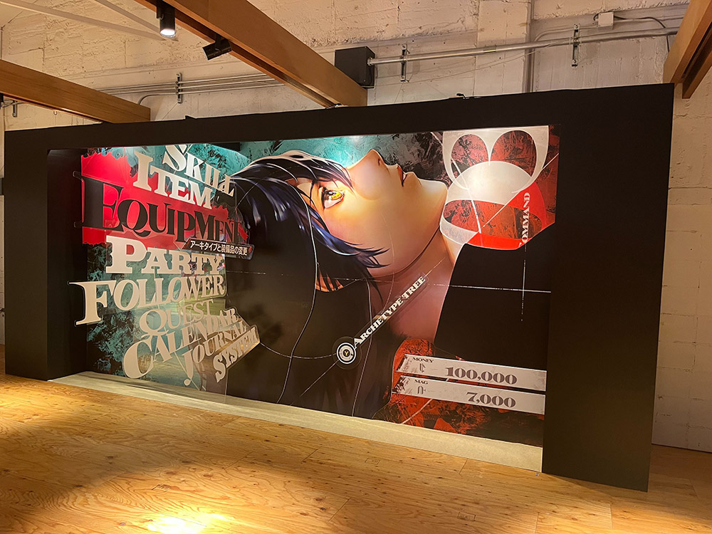 メインメニューを大迫力で楽しめる展示のほか、開発コメントとともに楽しめる映像は必見!また、フォトスポットでは作中のコマンドバトルに自分自身が入り込んだかのような写真が撮影できます。